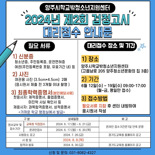 ¾çÁÖ½Ã(½ÃÀå °¼öÇö)°¡ ¾çÁÖ½ÃÇб³¹Ûû¼Ò³âÁö¿ø¼¾ÅÍ(ÀÌÇÏ ‘¾çÁֽà ²Þµå¸²’)¿¡¼ ¿À´Â 8¿ù 8ÀÏ¿¡ Ä¡·¯Áú ‘2024³â Á¦2ȸ ÃÊ·Áß·°í Á¹¾÷ Çз °ËÁ¤°í½Ã’ ÀÀ½Ã ¿ø¼Á¢¼ö ´ëÇàÀ» Áö¿øÇÑ´Ù°í ¹àÇû´Ù.