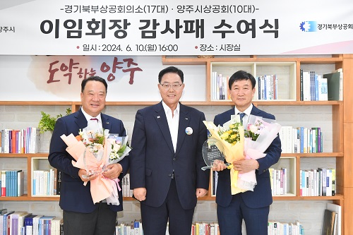°¼öÇö ¾çÁÖ½ÃÀåÀº Áö³ 10ÀÏ ½ÃÀå½Ç¿¡¼ Áö³ 3³â°£ °æ±âºÏºÎ¿Í ¾çÁֽø¦ »ó°ø¾÷ ¹ßÀüÀ» À§ÇØ Çå½ÅÇϰí ÀÌÀÓÇÏ´Â ÃÖ±Ù¼ö °æ±âºÏºÎ»ó°øÈ¸ÀÇ¼Ò Á¦17´ë ȸÀå°ú ¹ÚÁ¾¼ ¾çÁֽûó°øÈ¸ Á¦10´ë ȸÀå¿¡°Ô °¨»çÆÐ¸¦ Àü´ÞÇß´Ù.