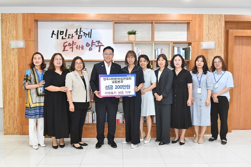 ¾çÁÖ½Ã(½ÃÀå °¼öÇö)°¡ 11ÀÏ ¿ÀÀü ¾çÁֽþÀÌÁý¿¬ÇÕȸ °ø¸³ºÐ°ú(ºÐ°úÀå ¹ÚÁö¼÷)¿¡¼ ½ÃûÀ» ¹æ¹®ÇØ ÀÌ¿ôµ½±â ¼º±ÝÀ¸·Î 200¸¸ ¿øÀ» ±âºÎÇß´Ù°í ¹àÇû´Ù.