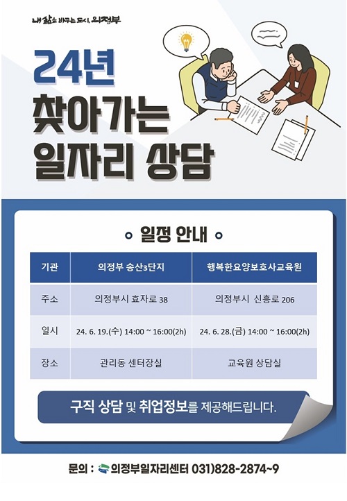 ÀÇÁ¤ºÎ½Ã(½ÃÀå ±èµ¿±Ù)´Â ÇöÀå Á᫐ Ãë¾÷Áö¿ø ¼ºñ½º ‘ã¾Æ°¡´Â ÀÏÀÚ¸® »ó´ã ⱸ’¸¦ ¿î¿µÇÑ´Ù.