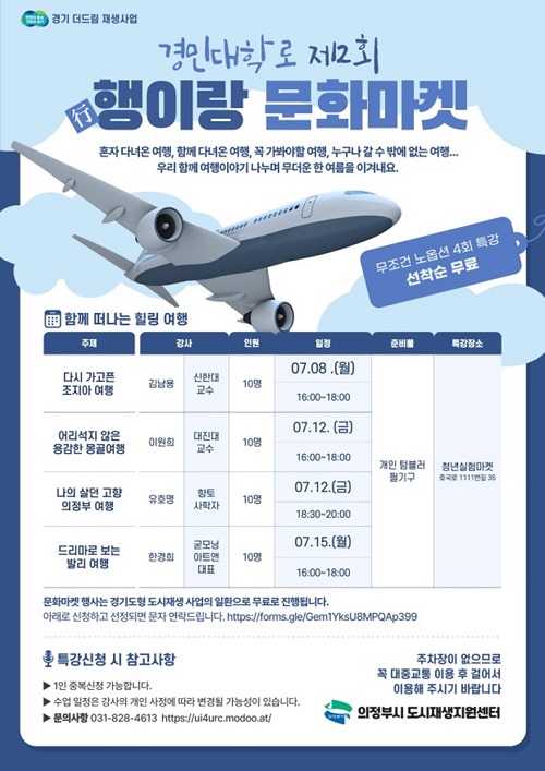 ÀÇÁ¤ºÎ½Ã(½ÃÀå ±èµ¿±Ù) µµ½ÃÀç»ýÁö¿ø¼¾ÅÍ´Â 7¿ù 8ÀϺÎÅÍ 15ÀϱîÁö °æ±âµµÇü µµ½ÃÀç»ý»ç¾÷ÀÇ ÀÏȯÀ¸·Î °æ¹Î´ëÇзΠû³â½ÇÇ踶ÄÏ(È£±¹·Î1111¹ø±æ 35)¿¡¼ ‘Á¦2ȸ ¹®È¸¶ÄÏ Æ¯°’À» ÁøÇàÇÑ´Ù.