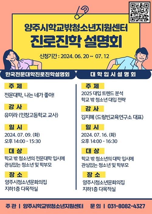 ¾çÁÖ½Ã(½ÃÀå °¼öÇö)°¡ ¾çÁÖ½ÃÇб³¹Ûû¼Ò³âÁö¿ø¼¾ÅÍ¿¡¼ ‘2024³â Çб³ ¹Û û¼Ò³â Áø·Î ÁøÇÐ ¼³¸íȸ(ÀÌÇÏ ¼³¸íȸ)’¸¦ °³ÃÖÇÑ´Ù°í ¹àÇû´Ù.