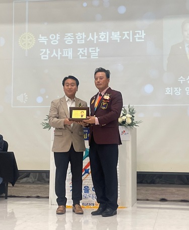 »çȸº¹Áö¹ýÀÎ »ç¶û±³À°º¹ÁöÀç´Ü¿¡¼ ¼öŹ ¿î¿µÇÏ´Â ³ì¾çÁ¾ÇÕ»çȸº¹Áö°ü(°üÀå ½ÅÈ«±Õ)Àº 6¿ù 26ÀÏ ±¹Á¦·ÎŸ¸® 3690Áö±¸ ÀÇÁ¤ºÎÁß¾Ó ·ÎŸ¸®Å¬·´(ȸÀå À̺´ÁØ) 32~33´ë ȸÀå ÀÌÃëÀӽĿ¡ Âü¼®ÇÏ¿© 32´ë ȸÀåÀ¸·Î ¿ªÀÓÇÑ ÀÓÅ¿ ÀÌÀÓȸÀå¿¡°Ô °¨»çÆÐ¸¦ Àü´ÞÇÏ´Â ½Ã°£À» °¡Á³´Ù.