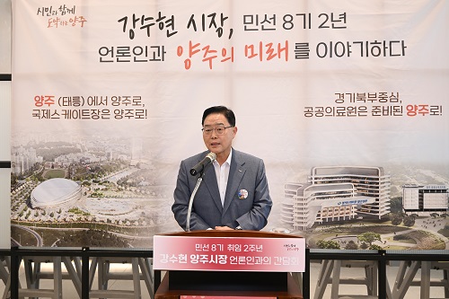 °¼öÇö ¾çÁÖ½ÃÀåÀÌ 4ÀÏ ¿ÀÀü ¾çÁÖ½Ãû ÃâÀÔ±âÀڴܰú ÇÔ²² Áö³ 2³â°£ ºû³µ´ø ½ÃÁ¤ ¼º°ú¸¦ µ¹¾Æº¸°í 3³â Â÷ ½ÃÁ¤ ¹æÇâÀ» °øÀ¯ÇÏ´Â ¼ÒÅëÀÇ ½Ã°£À» °¡Á³´Ù.