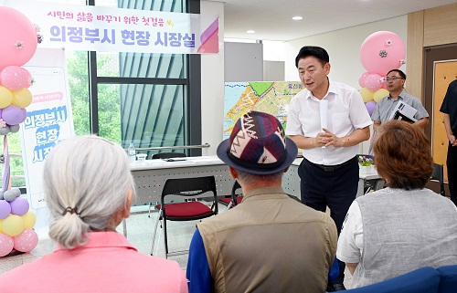 ±èµ¿±Ù ÀÇÁ¤ºÎ½ÃÀåÀÌ 8¿ù 2ÀÏ Èï¼±µ¿ÇàÁ¤º¹Áö¼¾ÅÍ¿¡¼ ‘ÇöÀå½ÃÀå½Ç’À» ¿°í ½Ã¹Îµé°ú ¸¸³ª ¼ÒÅëÇÏ´Â ½Ã°£À» °¡Á³´Ù.