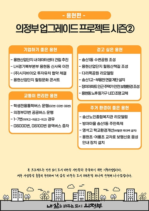 ÀÇÁ¤ºÎ½Ã(½ÃÀå ±èµ¿±Ù)´Â ½Ã¹ÎµéÀÇ »îÀÇ È¯°æÀ» ÇÑ ´Ü°è °³¼±Çϱâ À§ÇÑ ‘ÀÇÁ¤ºÎ ¾÷±×·¹À̵å ÇÁ·ÎÁ§Æ®’ÀÇ ½ÃÁð2 ¿ëÇöÆíÀ» 16ÀÏ ¹ßÇ¥Çß´Ù.