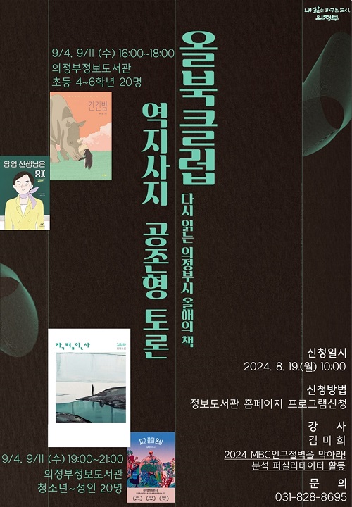 ÀÇÁ¤ºÎ½Ã(½ÃÀå ±èµ¿±Ù)´Â 9¿ù ÇÑ µµ½Ã ÇÑ Ã¥ ÀбâÀÇ ÀÏȯÀ¸·Î ´Ù½Ã Àд ¿ÃÇØÀÇ Ã¥ ‘¿ÃºÏŬ·´: ¿ªÁö»çÁö °øÁ¸Çü Åä·Ð’À» ¿î¿µÇÑ´Ù.