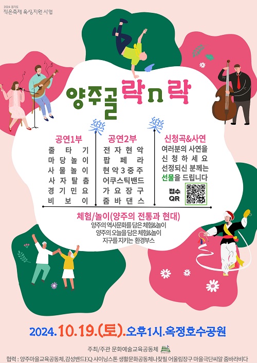 ‘¾çÁÖ°ñ ¶ô(äÅ)n¶ô(äÅ)’Àº Áö³ 2015³âºÎÅÍ °³ÃÖÇϰí ÀÖ´Â ÃàÁ¦·Î, ¾çÁÖ Áö¿ªÀÇ ¹®È¿Í ¿¹¼úÀ» ³Î¸® ¾Ë¸®°í Áö¿ª ¿¹¼úÀεé°ú Áö¿ªÁֹεé°úÀÇ ±³·ù¿Í ¸¸³²ÀÇ ±âȸ¸¦ ÅëÇØ Áö¿ª¼ºÀ» ´ãÀº ¿¹¼úÃàÁ¦ÀÇ ¹ßÆÇÀ» ¸¶·ÃÇϰíÀÚ ÃßÁøÇß´Ù.
