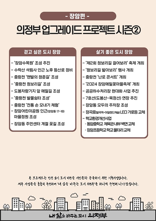 ÀÇÁ¤ºÎ½Ã(½ÃÀå ±èµ¿±Ù)´Â ½Ã¹ÎµéÀÇ »îÀÇ È¯°æÀ» ÇÑ ´Ü°è °³¼±Çϱâ À§ÇÑ ‘ÀÇÁ¤ºÎ ¾÷±×·¹À̵å ÇÁ·ÎÁ§Æ®’ÀÇ ½ÃÁð2 Àå¾ÏÆíÀ» 10¿ù 31ÀÏ ¹ßÇ¥Çß´Ù.