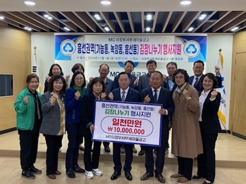 Àü´Þ½Ä¿¡´Â À±¸¸Çà ÀÇÁ¤ºÎ¼ºÎ»õ¸¶À»±Ý°í ÀÌ»çÀå, ¹Ú¼ºº¹ Èï¼±‧È£¿ø±Ç¿ª ±¹ÀåÀ» ºñ·ÔÇÑ Èï¼±‧°¡´É‧³ì¾çµ¿ ÁÖ¹ÎÀÚġȸÀå ¹× »õ¸¶À»ºÎ³àȸÀå µî 20¿©¸íÀÌ Âü¼®Çß´Ù. °¢ µ¿ »õ¸¶À»ºÎ³àȸ´Â MG¼ºÎ»õ¸¶À»±Ý°í·ÎºÎÅÍ ÃÑ 1õ¸¸ ¿ø(Èï¼±µ¿ 400¸¸ ¿ø, °¡´É‧³ì¾çµ¿ °¢ 300¸¸ ¿ø)À» ÈÄ¿ø¹Þ¾Ò´Ù.