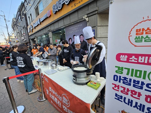 À̳¯ ³óÇù ÀÇÁ¤ºÎ½ÃÁöºÎ´Â ºÎ´ëÂî°³ ¹«·á½Ã½Äȸ Çà»ç¿¡¼ ÀÇÁ¤ºÎ½Ã Áö¿ª½ÒÀΠȸ·æ½Ò·Î ¸¸µç ¹äÀ» ½Ã¹Îµé¿¡°Ô ³ª´²ÁÖ¸ç ’½Ò ¼ÒºñÃËÁø‘ ¿îµ¿À» ¾Ë·È´Ù. ƯÈ÷, ½Ò ¼Òºñ°¨¼Ò¿Í °úÀ×Àç°í·Î Èûµé¾îÇÏ´Â ³ó¾÷ÀεéÀÇ »óȲ°ú, ½Ò »ê¾÷ ¹ßÀüÀ» À§ÇÑ ÃëÁö¸¦ ¼³¸íÇϸç ÇöÀåÀ» ãÀº ½Ã¹Îµé¿¡°Ô °Ç°ÇÑ ÇÑ ³¢ ½Ä»ç¸¦ ÅëÇØ ½Ò ¼Òºñ¸¦ ºÎŹÇÏ´Â ¸Þ½ÃÁö¸¦ Àü´ÞÇß´Ù.