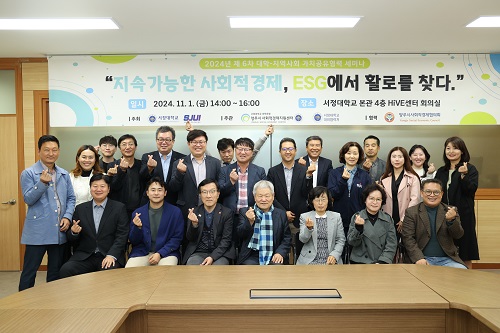 ¼Á¤´ëÇб³(ÃÑÀå ¾ç¿µÈñ)´Â Áö³ 1ÀÏ ¼Á¤´ëÇб³ º»°ü 4Ãþ HiVE¼¾ÅÍ È¸Àǽǿ¡¼ ‘Áö¼Ó°¡´ÉÇÑ »çȸÀû°æÁ¦, ESG¿¡¼ Ȱ·Î¸¦ ã´Ù’¸¦ ÁÖÁ¦·Î ‘2024³â Á¦6Â÷ ´ëÇÐ-Áö¿ª»çȸ °¡Ä¡°øÀ¯Çù·Â¼¼¹Ì³ª(ÀÌÇÏ ¼¼¹Ì³ª)’¸¦ °³ÃÖÇÏ¿´´Ù.