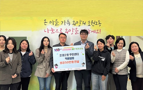 ÀÇÁ¤ºÎ½Ã È£¿ø2µ¿Áֹμ¾ÅÍ(µ¿Àå ÀÌÁ¾È£)´Â Áֹμ¾ÅÍ Á÷¿ø Àϵ¿ÀÌ ‘100Àϰ£ »ç¶û¸±·¹ÀÌ ¹èÅÏ ÀձⒿ¡ µ¿ÂüÇØ Ãë¾à°èÃþÀ» À§ÇÑ ¼º±Ý 50¸¸ ¿øÀ» Àü´ÞÇß´Ù°í 6ÀÏ ¹àÇû´Ù.