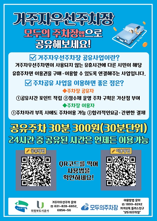 ÀÇÁ¤ºÎµµ½Ã°ø»ç°¡ ÁÖÂ÷³À» ¿ÏÈÇÏ°í °ÅÁÖÀÚ¿ì¼± ÁÖÂ÷ °ø°£À» È¿À²ÀûÀ¸·Î Ȱ¿ëÇϱâ À§ÇØ '°ÅÁÖÀÚ¿ì¼±ÁÖÂ÷Àå ÇÔ²²¾²±â'¿Í '¸ðµÎÀÇÁÖÂ÷Àå' Á¦µµ¸¦ ½ÃÇàÇÑ´Ù.