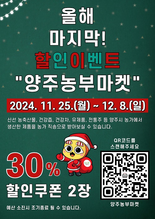 À̹ø Çà»ç´Â ¿À´Â 25ÀϺÎÅÍ 12¿ù 8ÀϱîÁö ÁøÇàµÇ¸ç ‘¾çÁÖ³óºÎ¸¶ÄÏ’ÀÇ ·Î±×ÀÎ ½Ã À̺¥Æ® ±â°£ Áß »ç¿ëÇÒ ¼ö ÀÖ´Â 30% ÇÒÀÎÄíÆù 2ÀåÀÌ Áö±ÞµÉ ¿¹Á¤ÀÌ´Ù.