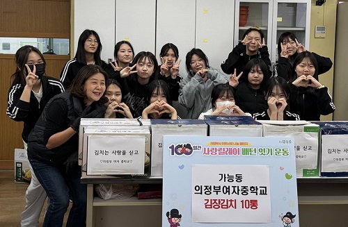 ÀÇÁ¤ºÎ½Ã °¡´Éµ¿Áֹμ¾ÅÍ(µ¿Àå ¹èÀº°æ)´Â 11¿ù 29ÀÏ ÀÇÁ¤ºÎ¿©ÀÚÁßÇб³(±³Àå ±èÇöÁÖ)°¡ Á÷Á¢ ´ã±Ù ±èÄ¡ 10»óÀÚ¸¦ ¾î·Á¿î Àú¼Òµæ °¡±¸¿¡°Ô ÀüÇØ´Þ¶ó¸ç ±âŹÇß´Ù°í ¹àÇû´Ù.