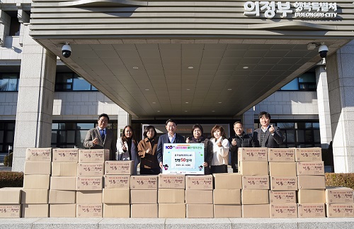ÀÇÁ¤ºÎ½Ã(½ÃÀå ±èµ¿±Ù)´Â 12¿ù 3ÀÏ Áö¿ª ºÀ»ç´Üü ¿Â±â½Éȸ(ȸÀå ³ª½ÂÀº)°¡ Àú¼Òµæ°¡±¸¸¦ À§ÇØ Âð»§ 50»óÀÚ¸¦ Àü´ÞÇÏ¸ç ‘100Àϰ£ »ç¶û¸±·¹ÀÌ ¹èÅÏ ÀձⒿ¡ µ¿ÂüÇß´Ù°í ¹àÇû´Ù.