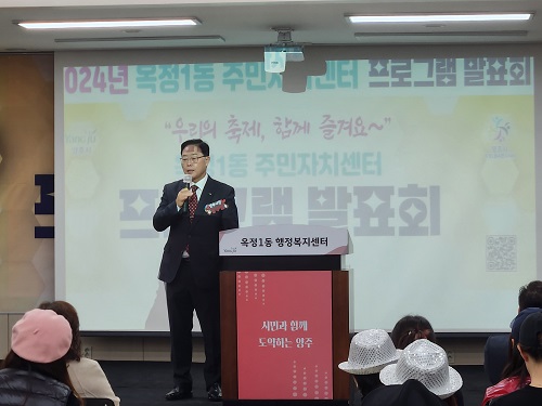 ¾çÁֽà ¿ÁÁ¤1µ¿ ÁÖ¹ÎÀÚġȸ(ȸÀå ±è¼ø¿Á)°¡ Áö³ 7ÀÏ ¿ÁÁ¤1µ¿ ÇàÁ¤º¹Áö¼¾ÅÍ 4Ãþ ´ë°´ç¿¡¼ ¡¸¿ÁÁ¤1µ¿ ÁÖ¹ÎÀÚÄ¡¼¾ÅÍ ÇÁ·Î±×·¥ ¹ßǥȸ¡¹¸¦ ¼ºÈ²¸®¿¡ °³ÃÖÇß´Ù.