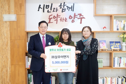 ¾çÁÖ½Ã(½ÃÀå °¼öÇö)°¡ 13ÀÏ ¢ß»ï¿ìÀÌ¿£Áö(´ëÇ¥ °±ÙÈ£)¿¡¼ ½ÃûÀ» ¹æ¹®ÇØ ¾çÁֽà ¾î·Á¿î ÀÌ¿ôÀ» À§ÇØ ½á´Þ¶ó¸ç ¼º±Ý 500¸¸ ¿øÀ» ±âºÎÇß´Ù°í ¹àÇû´Ù.
