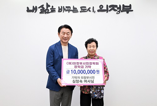 ÀÇÁ¤ºÎ½Ã(½ÃÀå ±èµ¿±Ù)´Â 5¿ù 15ÀÏ ½ÉÁ¤¼÷(89¼¼) ¾¾°¡ ÀÇÁ¤ºÎ½Ã¹ÎÀåÇÐȸ¿¡ ÀåÇÐ±Ý 1õ¸¸ ¿øÀ» ±âŹÇß´Ù°í ¹àÇû´Ù.