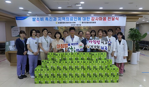 NHµ¿µÎõ½ÃÁöºÎ(ÁöºÎÀå ÀÌöÇö)´Â Áö³ 24ÀÏ, µ¿µÎõÁß¾Ó¼º¸ðº´¿øÀ» ¹æ¹®ÇØ ½Ò±¹¼ö ²Ù·¯¹Ì 100¹Ú½º(400°³)¸¦ Àü´ÞÇÏ¸ç ¿ì¸® ½Ò °¡°øÁ¦Ç°À» È«º¸Çϰí, Áö¿ª ÀÇ·á±â°ü¿¡ ±íÀº °¨»ç¸¦ ÀüÇß´Ù.