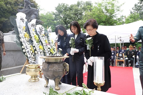 ¿ÃÇØ·Î 75ÁÖ³âÀ» ¸ÂÀº ÀÇÁ¤ºÎ Ã༮·É ÀüÅõ Ã߸ðÇà»ç´Â 6¤ý25ÀüÀï Ãʱ⠼¿ï Áø°ÝÀ» À§ÇØ ÀÇÁ¤ºÎ Ã༮·ÉÀ» ³Ñ¾î¿À´ø ºÏÇѱº¿¡ ¸Â¼ ¿ëÀüºÐÅõÇÏ´Ù ¼ø±¹ÇϽŠÁ¦2±³µµ´ë´ë °á»ç´ë¿ø(ͺ±èdzÀÍ Áß·É µî 11¸í¤ý8±âµ¿»ç´Ü 50Æ÷º´´ë´ëÀÇ Àü½Å)µéÀÇ È£±¹Á¤½ÅÀ» ±â¸®±â À§ÇØ ¸Å³â 8±âµ¿»ç´Ü ÁÖ°üÀ¸·Î ¿¸®°í ÀÖ´Ù.