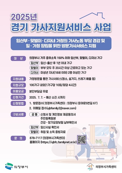 ÀÇÁ¤ºÎ½Ã(½ÃÀå ±èµ¿±Ù)´Â 7¿ù 7ÀϺÎÅÍ ‘2025³â °æ±â °¡»çÁö¿ø¼ºñ½º »ç¾÷’ ÀÌ¿ë ´ë»óÀÚ¸¦ ¸ðÁýÇÑ´Ù.