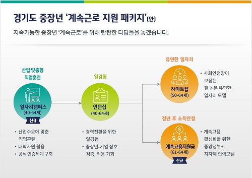 ÇÑÆí, °æ±âµµ´Â ÁßÀå³â ÀÏÀÚ¸® Ȱ¼ºÈ¸¦ À§ÇØ ‘°æ±âµµ ÁßÀå³â °è¼Ó±Ù·Î Áö¿ø ÆÐŰÁö’¸¦ ³»³âºÎÅÍ º»°Ý ½ÃÇàÇÒ ¿¹Á¤À̸ç, À̸¦ À§ÇÑ ±¸Ã¼ÀûÀÎ ¿¹»ê°ú °èȹÀ» ¼ö¸³ ÁßÀÌ´Ù.