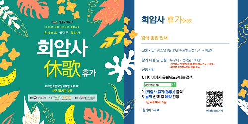 Çà»ç´Â ¿©¸§ Àú³áÀÇ »óÄèÇÔ°ú ³ëÀ»ÀÇ ºû, ¾çÁÖ È¸¾Ï»çÁö°¡ ÁÖ´Â Æò¿ÂÇÔÀ» ´À³¥ ¼ö ÀÖµµ·Ï ¿ÀÈÄ 5½ÃºÎÅÍ 7½Ã 30ºÐ±îÁö ÁøÇàµÈ´Ù. ¼¼ºÎ ÇÁ·Î±×·¥ Áߑȸ¾Ï»ç, ãæ¹«Â÷´ëȸ’´Â 8¿ù 20ÀÏ(¼ö) ¿ÀÀü 10½ÃºÎÅÍ »çÀüÁ¢¼ö¸¦ ½ÃÀÛÇϸç, ¼±Âø¼ø 100¸íÀ» ¸ðÁýÇÑ´Ù. »çÀüÁ¢¼ö ÀÜ¿©ºÐ¿¡ ÇÑÇØ ÇöÀåÁ¢¼öµµ °¡´ÉÇÏ´Ù. ‘¾ß´Ü¹ý¼® ȸ¾Ï»ç’, ‘ýÌʰÈÞ°¡, ½°À» ³ë·¡ÇÏ´Ù’´Â º°µµ ½Åû ¾øÀÌ ÇöÀå¿¡¼ ÀÚÀ¯·Ó°Ô °ü¶÷ÇÒ ¼ö ÀÖ´Ù.