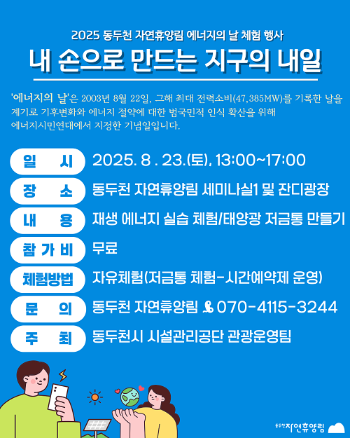 µ¿µÎõ½Ã ½Ã¼³°ü¸®°ø´Ü(ÀÌ»çÀå ÀÌÁ¾Áø) ÀÚ¿¬È޾縲Àº ‘¿¡³ÊÁöÀÇ ³¯’À» ¸Â¾Æ ¿À´Â 8¿ù 23ÀÏ Àç»ý¿¡³ÊÁö üÇè Çà»ç¸¦ °³ÃÖÇÑ´Ù.
