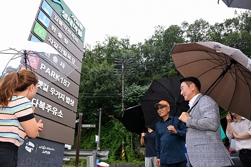 Á¤ºñ¸¦ ¸¶Ä£ ÀÚÀϵ¿ »ê111-14 ÀÏ¿ø ³ìÁö °ø°£¿¡´Â ±Ý¼Û·µÕ±Ù¼Ò³ª¹«·±Ý°è±¹·¸Æ¹®µ¿ µîÀÌ ½ÄÀçµÅ ÀÖ´Ù. ƯÈ÷ ±âÁ¸ÀÇ ¹«Áú¼ÇÑ ºÒ¹ý °£ÆÇ ´ë½Å ÀÇÁ¤ºÎ½Ã °ø°øµðÀÚÀÎ ±âÁØ¿¡ µû¸¥ »ê¸²ÈÞ¾ç½Ã¼³ ¾È³»ÆÇÀÌ ¼³Ä¡µÅ ÄèÀûÇÑ È¯°æÀ¸·Î Å»¹Ù²ÞÇß´Ù. º¯ÈµÈ ¸ð½À¿¡ ½Ã¹Îµé·ÎºÎÅÍ ±àÁ¤ÀûÀÎ ¹ÝÀÀÀÌ À̾îÁö°í ÀÖ´Ù.