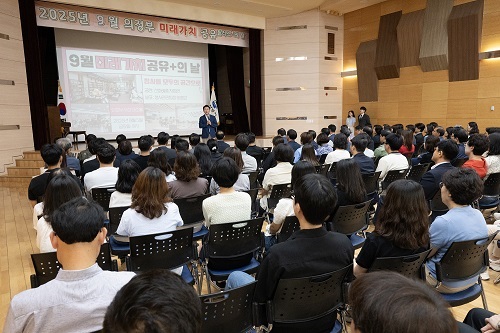 ÀÇÁ¤ºÎ½Ã(½ÃÀå ±èµ¿±Ù)´Â 9¿ù 5ÀÏ ½Ãû ÅÂÁ¶È¦¿¡¼ ½Ã¹Î°ú Á÷¿ø 120¿© ¸íÀÌ ÇÔ²²ÇÑ °¡¿îµ¥ ‘¹Ì·¡°¡Ä¡ °øÀ¯Ç÷¯½º+ÀÇ ³¯’À» °³ÃÖÇß´Ù.