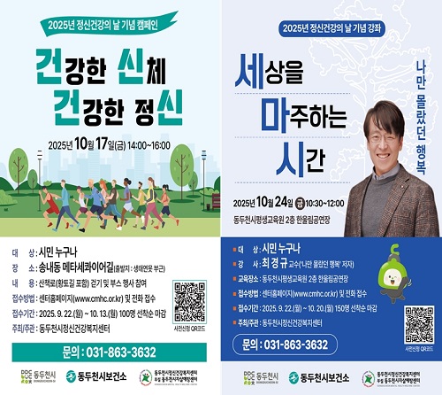 µ¿µÎõ½ÃÁ¤½Å°Ç°º¹Áö¼¾ÅÍ´Â ¼¼°èº¸°Ç±â±¸(WHO)°¡ ÁöÁ¤ÇÑ ‘¼¼°è Á¤½Å°Ç°ÀÇ ³¯(10¿ù 10ÀÏ)’À» ±â³äÇØ 2025³â °È±â Ä·ÆäÀΰú ±â³ä °Á¸¦ °³ÃÖÇÑ´Ù°í 24ÀÏ ¹àÇû´Ù. ¼¼°è Á¤½Å°Ç°ÀÇ ³¯Àº Á¤½ÅÁúȯ¿¡ ´ëÇÑ Æí°ßÀ» ÇØ¼ÒÇϰí, Á¤½Å°Ç°¿¡ ´ëÇÑ »çȸÀû °ü½ÉÀ» ³ôÀ̱â À§ÇØ Á¦Á¤µÈ ±â³äÀÏÀÌ´Ù.
