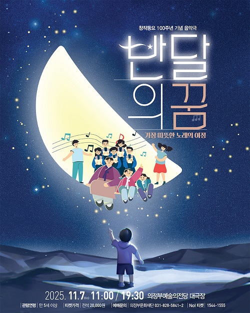 ÀÇÁ¤ºÎ¹®ÈÀç´Ü(´ëÇ¥ÀÌ»ç ¹ÚÈñ¼º)Àº ¿À´Â 11¿ù, ¼¼´ë¸¦ ¾Æ¿ì¸£´Â âÀÛ µ¿¿ä À½¾Ç±Ø ¡´¹Ý´ÞÀÇ ²Þ¡µÀ» ÃÊ¿¬ÇÑ´Ù. 100³â¿¡ °ÉÄ£ Çѱ¹ µ¿¿äÀÇ º¯Ãµ»ç¸¦ ¾Æ¸§´Ù¿î ¼±À²°ú À̾߱â·Î ¿«Àº À̹ø ÀÛǰÀº ¾ÆÀ̺ÎÅÍ ¾î¸¥±îÁö ¸ðµÎ°¡ ÇÔ²² Áñ±æ ¼ö ÀÖ´Â µ¿¿ä À½¾Ç±ØÀ¸·Î, ¹®ÈüÀ°°ü±¤ºÎ°¡ ÁÖÃÖÇϰí Çѱ¹¹®È¿¹¼úȸ°ü¿¬ÇÕȸ°¡ ÁÖ°üÇÏ´Â ‘2025 ¹®¿¹È¸°ü Ư¼ºÈ Áö¿ø»ç¾÷’ ½ÅÀÛ Á¦ÀÛÇü °ø¸ð¿¡ ÃÖÁ¾ ¼±Á¤µÈ ÀÛǰÀÌ´Ù.
