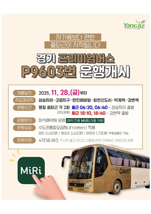 ¾çÁֽà »ï¼þÀÚÀÌ¿¡¼ ¼¿ï °º¯¿ª±îÁö ¿îÇàÇÏ´Â °æ±âÇÁ¸®¹Ì¾ö ¹ö½º P9603¹øÀÌ 28ÀϺÎÅÍ º»°Ý ¿îÇàÀ» ½ÃÀÛÇß´Ù.