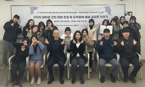 °æ±âºÏºÎµµ¹Ú¹®Á¦¿¹¹æÄ¡À¯¼¾ÅÍ(¼¾ÅÍÀå Àü¼ö¹Ì) ¿Í À»Áö´ëÇб³(ÃÑÀå È«¼ºÈñ)°¡ °øµ¿À¸·Î °³ÃÖÇÑ <2025 ´ëÇлý °ÇÀü¹®È Á¶¼º ¹× µµ¹Ú¹®Á¦ ¿¹¹æÀ» À§ÇÑ °ø¸ðÀü ½Ã»ó½Ä>ÀÌ 11¿ù 25ÀÏ À»Áö´ëÇб³ ¼º³²Ä·ÆÛ½º¿¡¼ ¿·È´Ù.