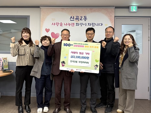 ÀÇÁ¤ºÎ½Ã ½Å°î2µ¿Áֹμ¾ÅÍ(µ¿Àå ÀÌ»óÇö)´Â 12¿ù 8ÀÏ ½Å°î2µ¿ ÁÖ¹ÎÀÚġȸ(ȸÀå Çö¿ë»ê)°¡ ‘100Àϰ£ »ç¶û¸±·¹ÀÌ ¹èÅÏ ÀձⒿ¡ µ¿ÂüÇØ ÀÌ¿ôµ½±â ¼º±Ý 310¸¸ ¿øÀ» ±âŹÇß´Ù°í ¹àÇû´Ù.