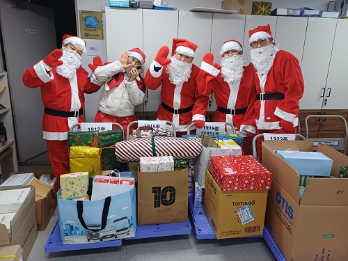 À̹ø Çà»ç´Â Å©¸®½º¸¶½º¸¦ ¸Â¾Æ »êŸ º¹ÀåÀ» ÇÑ µ¿´ëÇ¥µé°ú °ü¸®¼ÒÀåÀÌ °¢ ¼¼´ë¸¦ Á÷Á¢ ¹æ¹®ÇØ ºÎ¸ð°¡ ÁغñÇÑ ¼±¹°À» ¾ÆÀ̵鿡°Ô Àü´ÞÇÏ´Â ¹æ½ÄÀ¸·Î ÁøÇàµÆÀ¸¸ç, ÃÑ ¾à 80¼¼´ë°¡ Âü¿©ÇØ ³ôÀº È£ÀÀÀ» ¾ò¾ú´Ù.