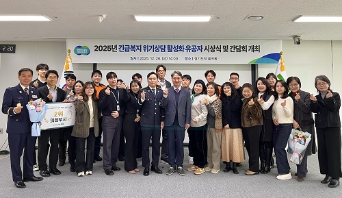 °æ±âµµ´Â 26ÀÏ °æ±âµµÃ»¿¡¼ ‘±ä±Þº¹Áö À§±â»ó´ã Äݼ¾ÅÍ(ÇÖ¶óÀÎ) Ȱ¼ºÈ À¯°øÀÚ ½Ã»ó½Ä ¹× °£´ãȸ °³ÃÖ’¸¦ ¿°í ±ä±Þº¹Áö À§±â»ó´ã Ȱ¼ºÈ¸¦ À§ÇØ ³ë·ÂÇÑ À¯°øÀÚ °Ý·Á ¹× Á¦º¸ÀÚ ¼Ò°¨ ¹ßÇ¥ µî °£´ãȸ¸¦ °³ÃÖÇÏ¿´´Ù.