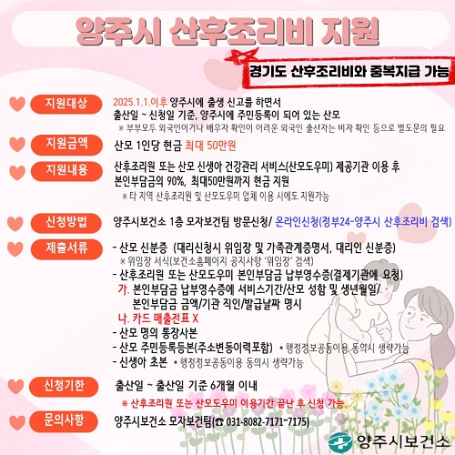 ¾çÁֽú¸°Ç¼Ò°¡ 2025³â 1¿ù 1ÀÏ Ãâ»ý¾ÆºÎÅÍ °ü³» Ãâ»ê°¡Á¤À» ´ë»óÀ¸·Î ‘¾çÁֽà »êÈÄÁ¶¸®ºñ Áö¿ø»ç¾÷’À» ½ÃÇàÇϰí ÀÖ´Ù.