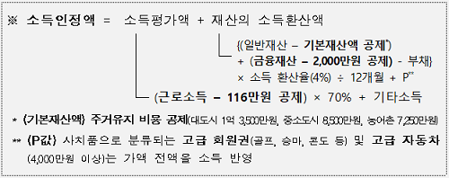 A : ³ëÀÎ °¡±¸ÀÇ °¢Á¾ ¼Òµæ°ú Àç»êÀ» ¼ÒµæÀ¸·Î ȯ»êÇÏ¿© ÇÕ»êÇÑ ±Ý¾×À¸·Î ±Ù·Î¼Òµæ °øÁ¦, ÀϹÝÀç»ê °øÁ¦, ±ÝÀ¶Àç»ê °øÁ¦ µîÀ» Â÷°¨ÇÏ¿© »êÁ¤ÇÕ´Ï´Ù.