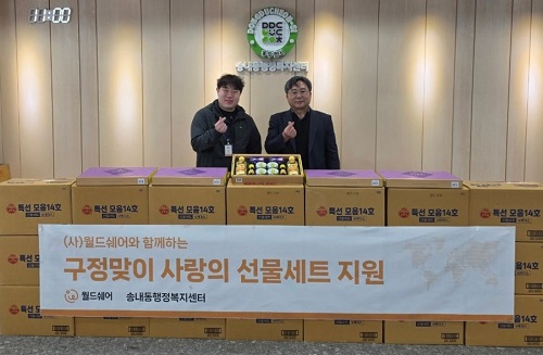 »ç´Ü¹ýÀÎ ¿ùµå½¦¾î(ÀÌ»çÀå ÃÖ¼øÀÚ)´Â Áö³ 2ÀÏ ¼³ ¸íÀýÀ» ¾ÕµÎ°í ¾î·Á¿î ÀÌ¿ôÀ» À§ÇØ »ç¿ëÇØ ´Þ¶ó¸ç ¿À¶Ñ±â ¼±¹°¼¼Æ® 150°³¸¦ ¼Û³»µ¿ ÇàÁ¤º¹Áö¼¾ÅÍ¿¡ ±âŹÇß´Ù.
