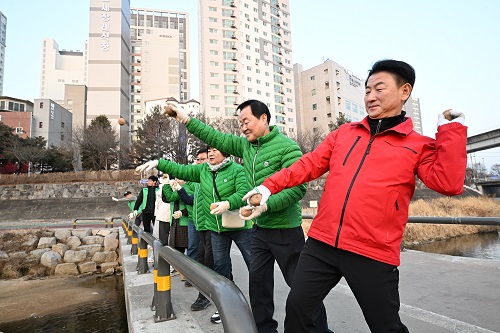 ÀÇÁ¤ºÎ½Ã´Â 2¿ù 21ÀÏ ÀÇÁ¤ºÎ½Ã »õ¸¶À»È¸(ȸÀå Á¶»ó±Ç)°¡ °æÀüö µ¿¿À¿ª Àαٿ¡¼ ¼öÁú °³¼±À» À§ÇÑ EM Èë°ø ´øÁö±â Ȱµ¿À» ½Ç½ÃÇϰí, À̾î È£¿øµ¿ ¹æ¸é ¾à 3§° ±¸°£¿¡¼ Áß¶ûõ °È±â Çà»ç¸¦ ÁøÇàÇß´Ù°í ¹àÇû´Ù.