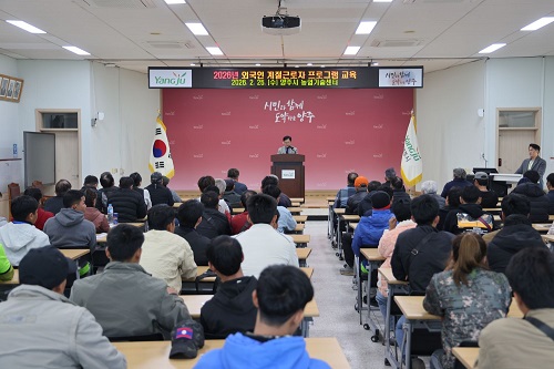 ¾çÁֽà ³ó¾÷±â¼ú¼¾ÅÍ¿¡¼´Â ÀÔ±¹ÇÑ ±Ù·ÎÀÚµéÀ» ´ë»óÀ¸·Î ¿À¸®¿£Å×À̼ÇÀ» ÁøÇàÇϰí, ±Ù·Î Á¶°Ç°ú ¾ÈÀü¼öÄ¢ µîÀ» ¾È³»Çß´Ù.