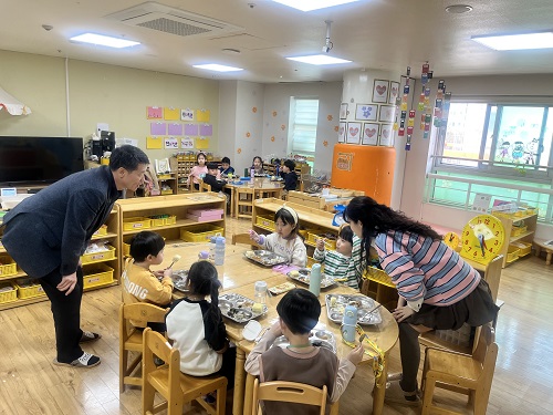 À̹ø ÇöÀå ¹æ¹®Àº ±³À°½Ã¼³ ȯ°æ °³¼±°ú ÇÔ²² À¯¾Æ °Ç°À» À§ÇÑ ±Þ½Ä °ü¸® µî ±³À°È¯°æ Àü¹ÝÀ» Á¡°ËÇÏ´Â ÀÚ¸®·Î, ±³À°Áö¿øÃ»ÀÌ ÃßÁøÇϰí ÀÖ´Â ¾ÈÀüÇϰí ÄèÀûÇÑ Çб³ ȯ°æ Á¶¼º Á¤Ã¥À» ÇöÀå¿¡¼ ½ÇõÇÏ´Â ÀÇ¹Ì ÀÖ´Â °è±â°¡ µÆ´Ù.