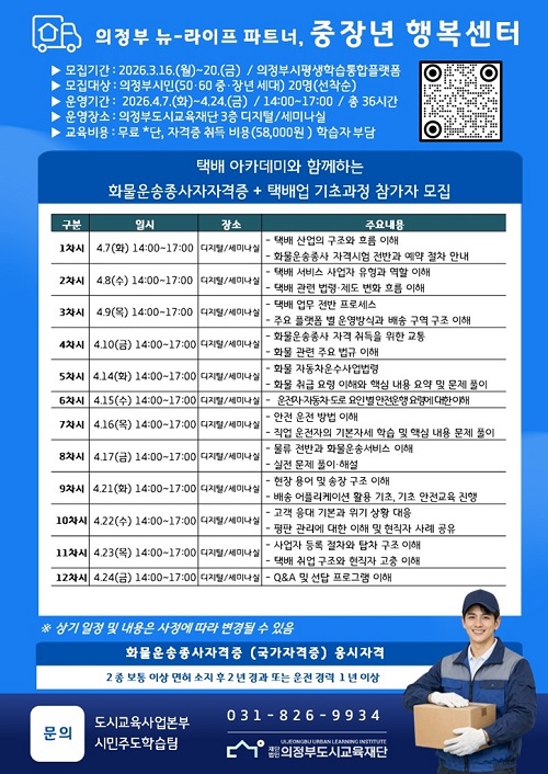 À̹ø °úÁ¤Àº ´Ü¼øÇÑ ÀÌ·Ð ±³À°ÀÌ ¾Æ´Ñ, ÀÚ°Ý Ãëµæ°ú ÇöÀå ½Ç¹«¸¦ µ¿½Ã¿¡ ÁغñÇÏ´Â ½ÇÁúÀû Ãë·Ã¢¾÷ ¿¬°è ÇÁ·Î±×·¥ÀÌ´Ù. ÃÖ±Ù ¹°·ù·¹è¼Û »ê¾÷ÀÇ Áö¼ÓÀûÀÎ ¼ºÀå ¼Ó¿¡¼, Ã¥ÀÓ°¨°ú °æÇèÀ» °®Ãá ÁßÀå³â Àη¿¡ ´ëÇÑ ¼ö¿ä°¡ ²ÙÁØÈ÷ È®´ëµÇ°í ÀÖ´Â ¸¸Å À̹ø ÇÁ·Î±×·¥Àº »õ·Î¿î ÀÏÀÚ¸® ±âȸ¸¦ ¸ð»öÇÏ´Â ÀÇÁ¤ºÎ½Ã¹Îµé¿¡°Ô ÀÇ¹Ì ÀÖ´Â °úÁ¤ÀÌ µÉ °ÍÀ¸·Î ±â´ëµÈ´Ù.