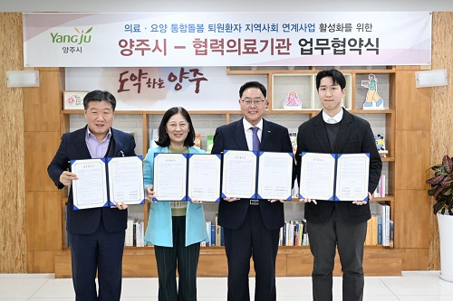 ¾çÁֽô 11ÀÏ ½ÃÀå½Ç¿¡¼ ¾çÁÖ¿¹¾²º´¿ø, °æ±âµµÀÇ·á¿ø ÀÇÁ¤ºÎº´¿ø°ú Åð¿øÈ¯ÀÚÀÇ ¾ÈÁ¤ÀûÀÎ Áö¿ª»çȸ Á¤Âø°ú ¿øÈ°ÇÑ »çȸ º¹±Í¸¦ Áö¿øÇϱâ À§ÇØ ‘Åð¿øÈ¯ÀÚ Áö¿ª»çȸ ¿¬°è ¾÷¹«Çù¾à’À» ü°áÇß´Ù.