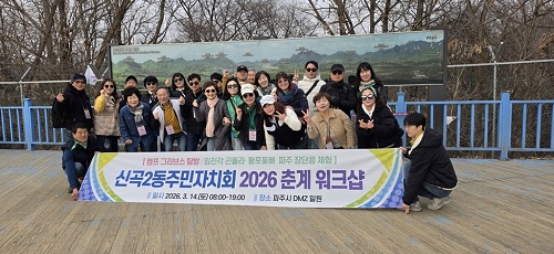 ÀÇÁ¤ºÎ½Ã ½Å°î2µ¿Áֹμ¾ÅÍ(µ¿Àå ÀÌ»óÇö)´Â 3¿ù 14ÀÏ ½Å°î2µ¿ ÁÖ¹ÎÀÚġȸ(ȸÀå Çö¿ë»ê)°¡ ÆÄÁֽà DMZ ÀÏ¿ø¿¡¼ ÁÖ¹ÎÀÚġȸ À§¿ø°ú °ü°èÀÚ µî 25¸íÀÌ Âü¼®ÇÑ °¡¿îµ¥ 2026³â Ãá°è ¿öÅ©¼óÀ» ÁøÇàÇß´Ù°í ¹àÇû´Ù.