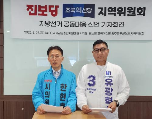 Áøº¸´ç ¾çÁÖ·µ¿µÎõ·¿¬Ãµ Áö¿ªÀ§¿øÈ¸(À§¿øÀå ÇÑÇöÈ£)¿Í Á¶±¹Çõ½Å´ç µ¿µÎõ·¾çÁÖ·¿¬Ãµ Áö¿ªÀ§¿øÈ¸(À§¿øÀå À¯±¤Çõ)ÀÌ 6.3Áö¹æ¼±°Å °øµ¿´ëÀÀ¿¡ ³ª¼¹´Ù.