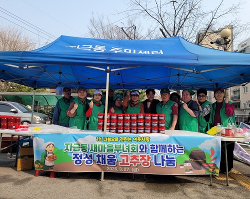 ÀÇÁ¤ºÎ½Ã Àڱݵ¿Áֹμ¾ÅÍ(µ¿Àå À¯ÁøÈ¯)´Â 3¿ù 27ÀÏ Àڱݵ¿ »õ¸¶À»ºÎ³àȸ(ȸÀå ±èÁ¤¼÷)°¡ °ü³» ¾î·Á¿î ÀÌ¿ôµéÀ» À§ÇØ °íÃßÀå 60ÅëÀ» ±âŹÇÏ¸ç µû¶æÇÑ ³ª´®À» ½ÇõÇß´Ù°í ¹àÇû´Ù.